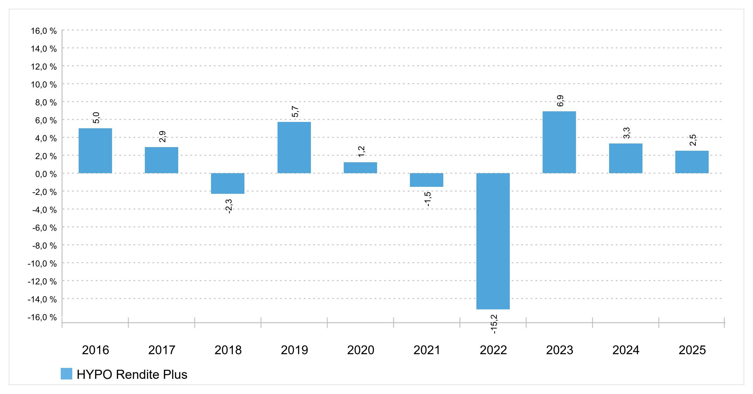 Ziel der Anlagepolitik ist auf längere Sicht die Erwirtschaftung eines Wertzuwachses unter Inkaufnahme mittlerer Wertschwankungen.