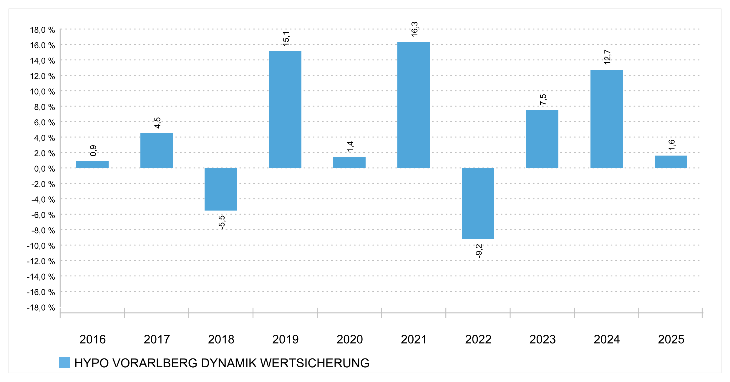 Für den gemischten Fonds werden die verschiedenen Vermögenswerte auf Grundlage eines Wertsicherungsmodells ausgewählt. Dabei wird versucht eine Wertuntergrenze von 80 % des höchsten errechneten Monatsendwertes (Wert zum letzten Bankarbeitstag im Monat) einzuhalten, auch die monatliche Anpassung der Veranlagungsinstrumente erfolgt zum Monatsende. Eine Garantie zur Einhaltung dieser Wertuntergrenze kann nicht abgegeben werden. Der Einsatz des Wertsicherungsmodells kann bedeuten, dass der Anleger über längere Zeiträume oder auf Dauer nicht an der Entwicklung der risikobehafteten Ertragskomponente partizipiert. Bei einer positiven Aktienmarktentwicklung wird sich die Aktienquote zu Lasten der Veranlagung in Schuldverschreibungen (SV) und Geldmarktinstrumente (GMI) erhöhen. Im Extremfall kann die Strategie in einem ausgeprägten Aufwärtstrend nur aus Aktien bestehen. In fallenden Aktienmärkten wird die Aktienkomponente zugunsten der Veranlagung in SV und GMI verlagert. Im Extremfall kann die Aktienkomponente auf 0 % reduziert werden. Die Veranlagung des Fonds erfolgt über Aktienfonds, SV sowie GMI. Der Fonds kann in Sichteinlagen, kündbare Einlagen und Fonds investieren. SV und GMI, welche erworben werden, können von Unternehmen, Regierungen oder anderen Stellen ausgegeben werden. Der Fonds darf mehr als 35 % seines FV in Wertpapieren und/oder Geldmarktinstrumenten von Mitgliedsstaaten, Gebietskörperschaften oder internationalen Einrichtungen öffentlich-rechtlichen Charakters anlegen. Die genaue Auflistung der Emittenten finden Sie im Prospekt, Abschnitt I, Punkt 1.12.