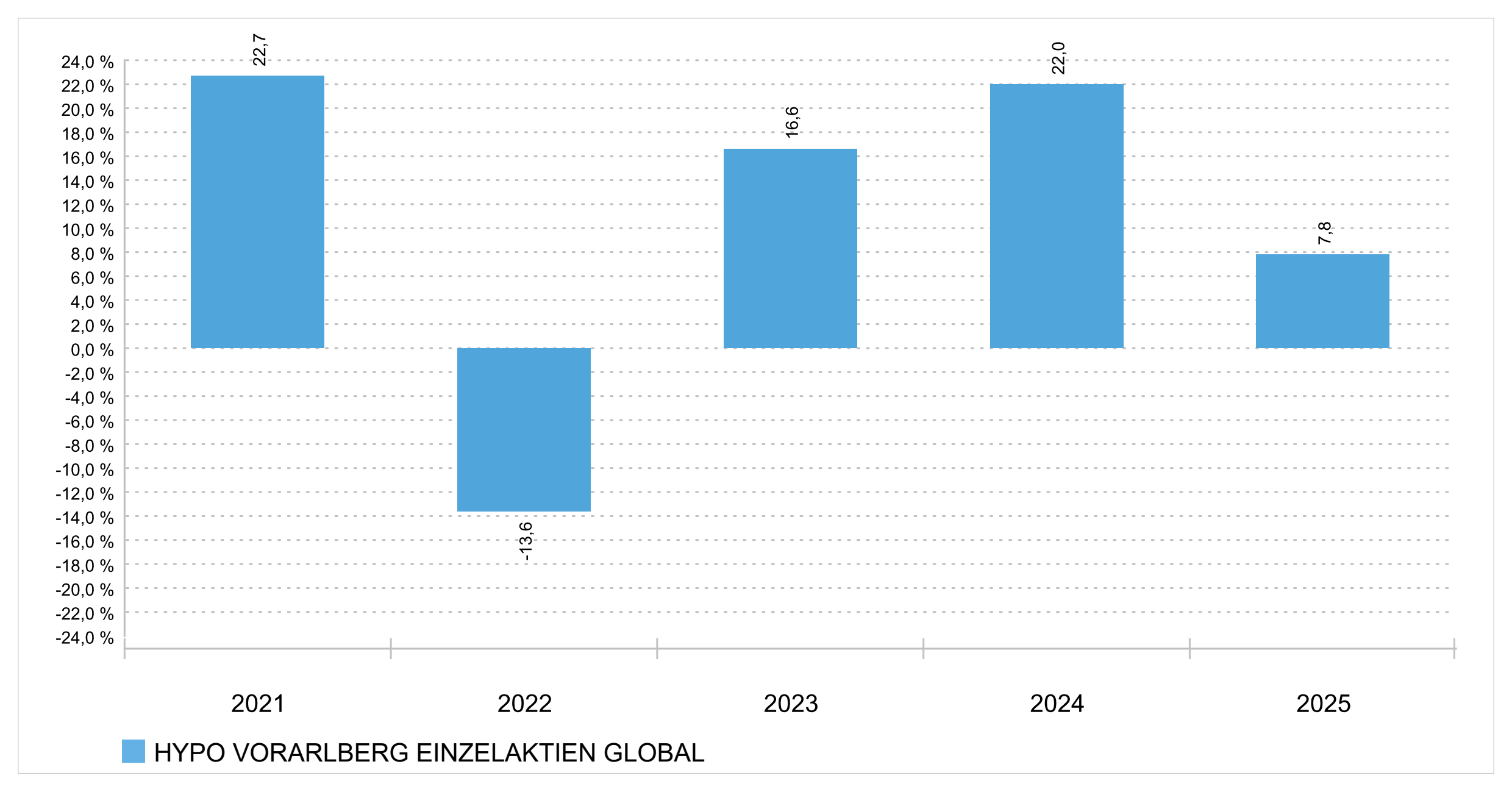 Der Fonds ist ein Aktienfonds und investiert mindestens 51 % seines Fondsvermögens (FV) in Aktien und aktiengleichwertige Wertpapiere (auch im Sinne des dt. InvStG), jedweder Region, Branche und Währung, in Form von direkt erworbenen Einzeltiteln, sohin nicht indirekt oder direkt über Fonds oder über Derivate. Die Emittenten unterliegen hinsichtlich ihres Unternehmensgegenstandes keinen branchenmäßigen und hinsichtlich ihrer Marktkapitalisierung keinen volumensmäßigen Beschränkungen. Bis zu 49 % des FV können in Geldmarktinstrumente, Schuldverschreibungen oder sonstige verbriefte Schuldtitel, welche von Unternehmen, Regierungen oder anderen Stellen ausgegeben werden können, investiert werden. Die Veranlagung kann auch bis zu 10 % des FV über Fonds abgebildet werden. Sichteinlagen und kündbare Einlagen dürfen bis zu 49 % des FV gehalten werden.