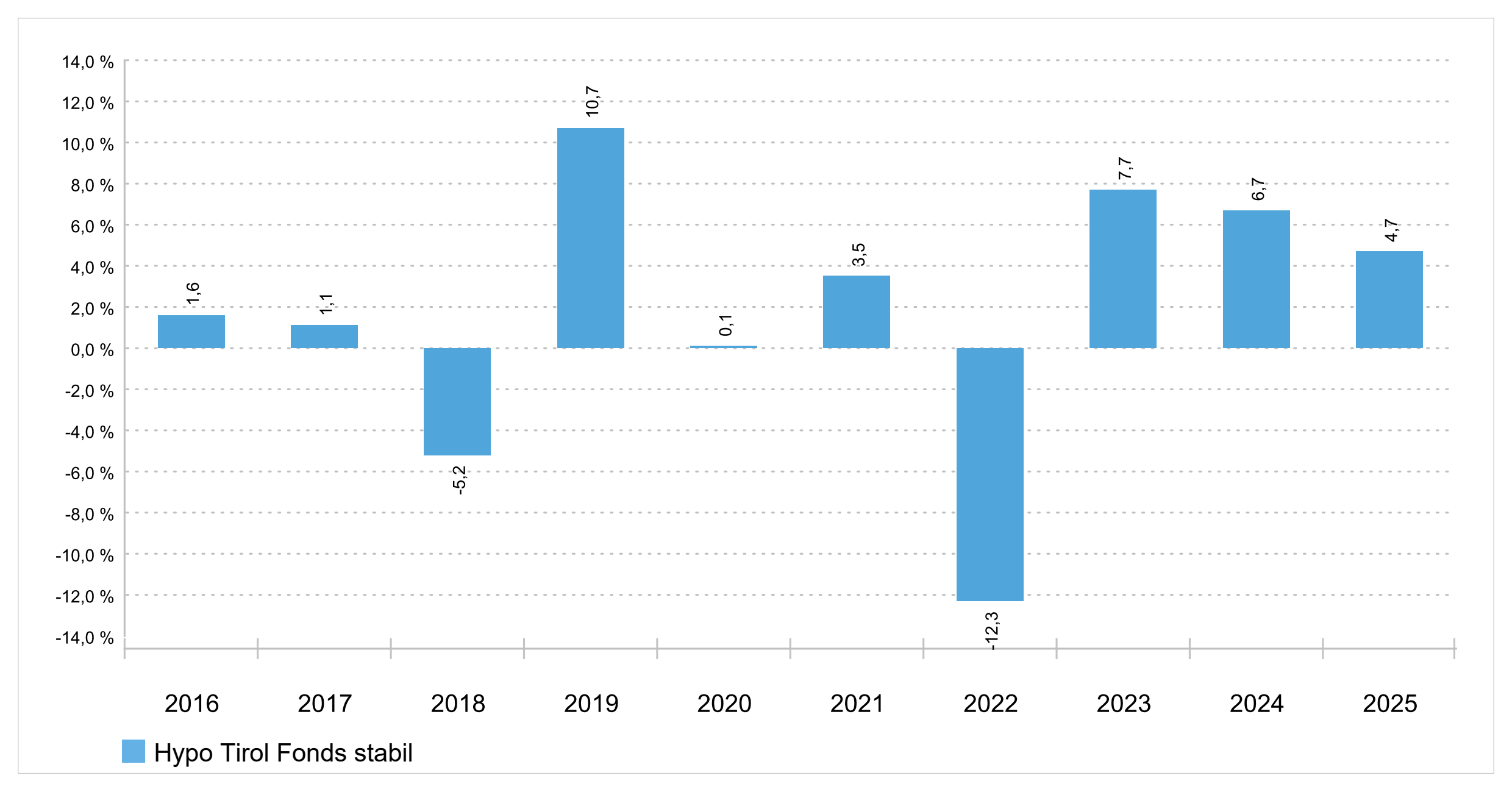 Der Fonds ist ein gemischter Fonds bei dem insbesonders auf eine breite Streuung und auf die Liquidität des Fondsvermögens (FV) Rücksicht genommen wird. Die Auswahl der Subfonds erfolgt anhand quantitativer und qualitativer Kriterien. Bis maximal 45 % des FV kann in Aktienfonds und gemischte Fonds investiert werden. Je nach Einschätzung der Börsen- und Kapitalmarktlage werden bestimmte Regionen und Länder über- oder untergewichtet. Zusätzlich kann in interessante Branchen oder Themen investiert werden. Ebenfalls kann der Fonds in Anleihenfonds und bis zu 49 % des FV in Geldmarktfonds investieren. Die Anleihenveranlagung zielt auf Schuldverschreibungen in Euro ab; es können aber auch Fremdwährungsanleihen bis zu 49 % des Fonds erworben werden. Die Veranlagung erfolgt zu mindestens 51 % des FV über Fonds, es können jedoch auch Einzeltitel wie Aktien sowie Schuldverschreibungen und Geldmarktinstrumente, welche von Unternehmen, Regierungen oder anderen Stellen ausgegeben werden können, beigemischt werden. Bis zu max. 49 % des FV können auch Sichteinlagen und kündbare Einlagen gehalten werden.
