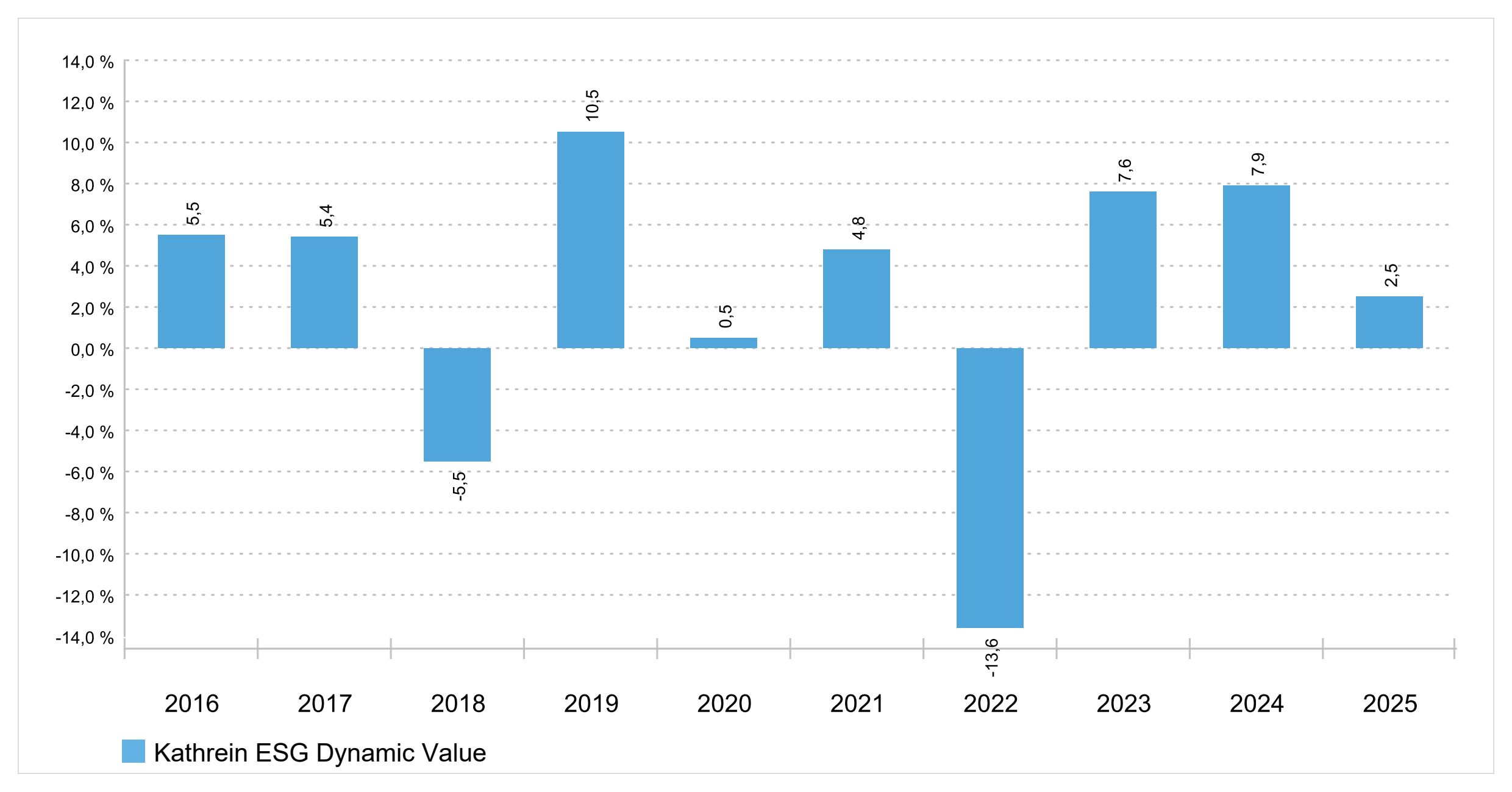 Wertentwicklung pro Kalenderjahr in Prozent