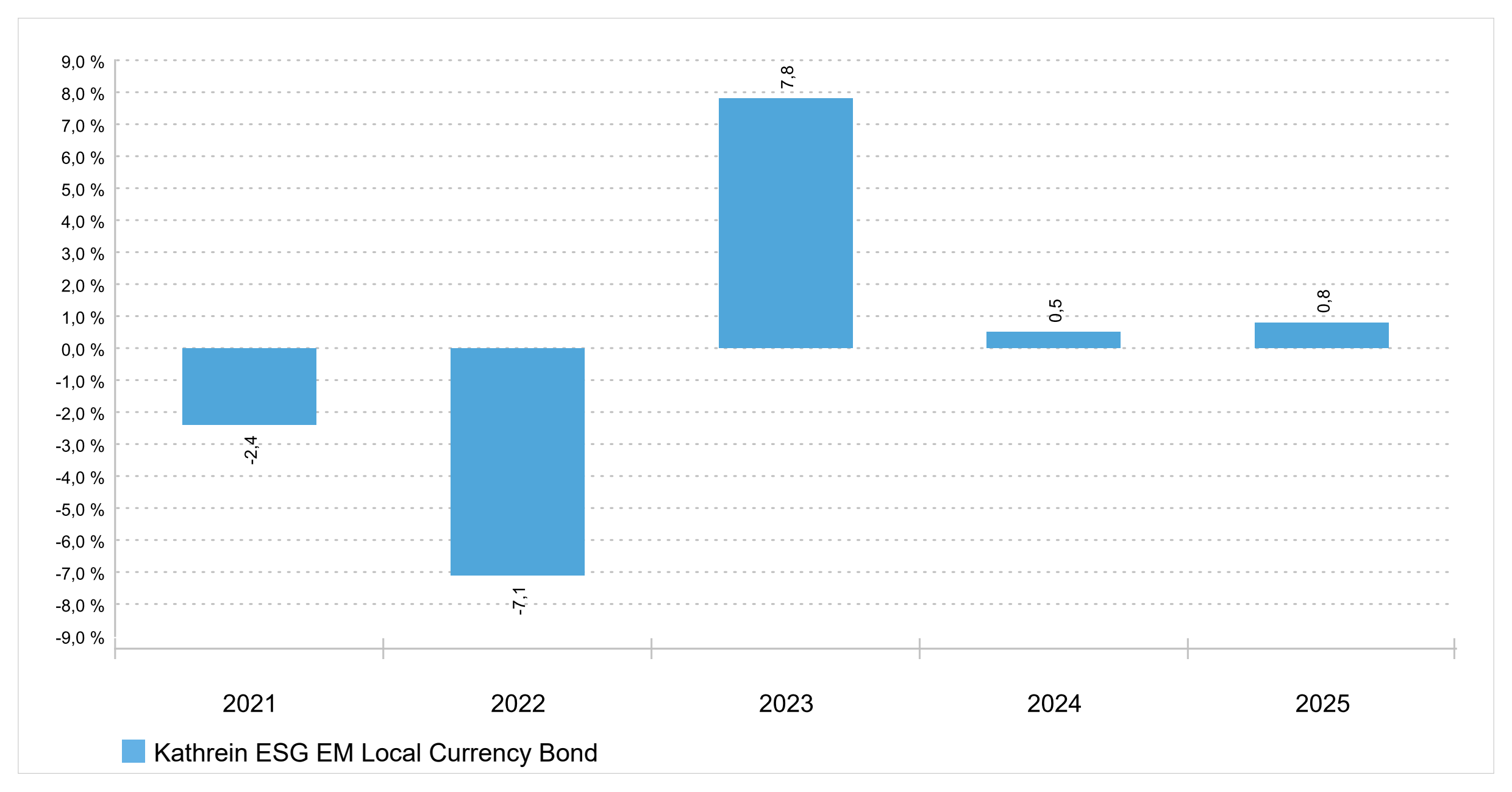 Der Fonds ist ein Anleihenfonds und investiert mindestens 51 % des Fondsvermögens (FV) in Schuldverschreibungen von Unternehmen mit Sitz oder mit Geschäftstätigkeit in Emerging Markets in Form von direkt erworbenen Einzeltiteln, sohin nicht indirekt oder direkt über Investmentfonds oder über Derivate. Beim Anleiheninvestment wird auf Anleihen der Emerging und Frontier Markets in der jeweiligen Landeswährung oder in Doppelwährungsanleihen einer Hartwährung zurückgegriffen. Die Schuldverschreibungen unterliegen hinsichtlich ihrer Ratingeinstufung keiner Einschränkung. Ebenfalls können bis zu 10 % des FV Anleihenfonds und Geldmarktfonds jedweder Branche und Region erworben werden. Der Fonds erwirbt keine Aktien, weder in Form von direkt erworbenen Einzeltiteln, noch indirekt oder direkt über Investmentfonds oder über Derivate. Der Fonds darf mehr als 35 % seines FV in Wertpapieren und/ oder Geldmarktinstrumenten von Mitgliedsstaaten, Gebietskörperschaften oder internationalen Einrichtungen öffentlich-rechtlichen Charakters anlegen. Die genaue Auflistung der Emittenten finden Sie im Prospekt, Abschnitt I, Punkt 1.12. Der Fonds kann außerdem bis zu 49 % des FV in Geldmarktinstrumente und Schuldverschreibungen, welche von Regierungen oder anderen Stellen ausgegeben werden können, sowie Sichteinlagen und kündbare Einlagen investieren.