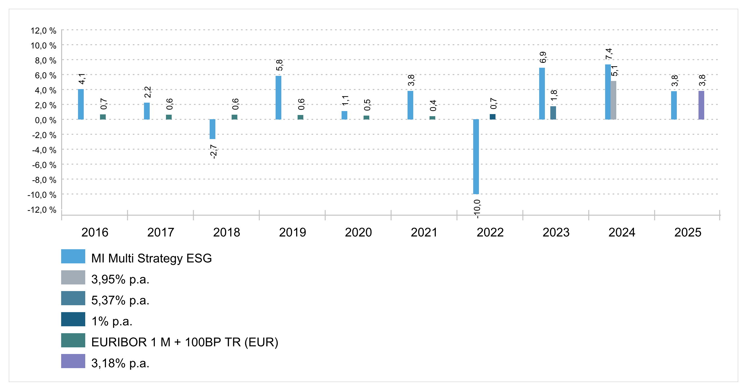 Wertentwicklung pro Kalenderjahr in Prozent