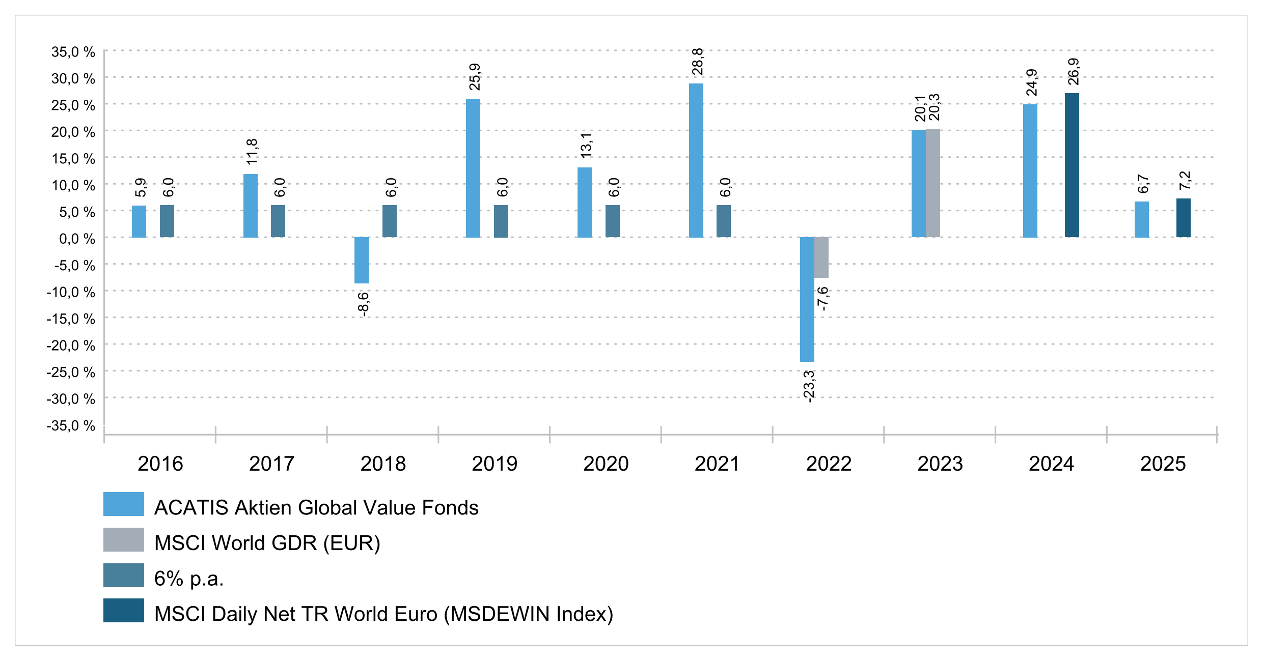Wertentwicklung pro Kalenderjahr in Prozent