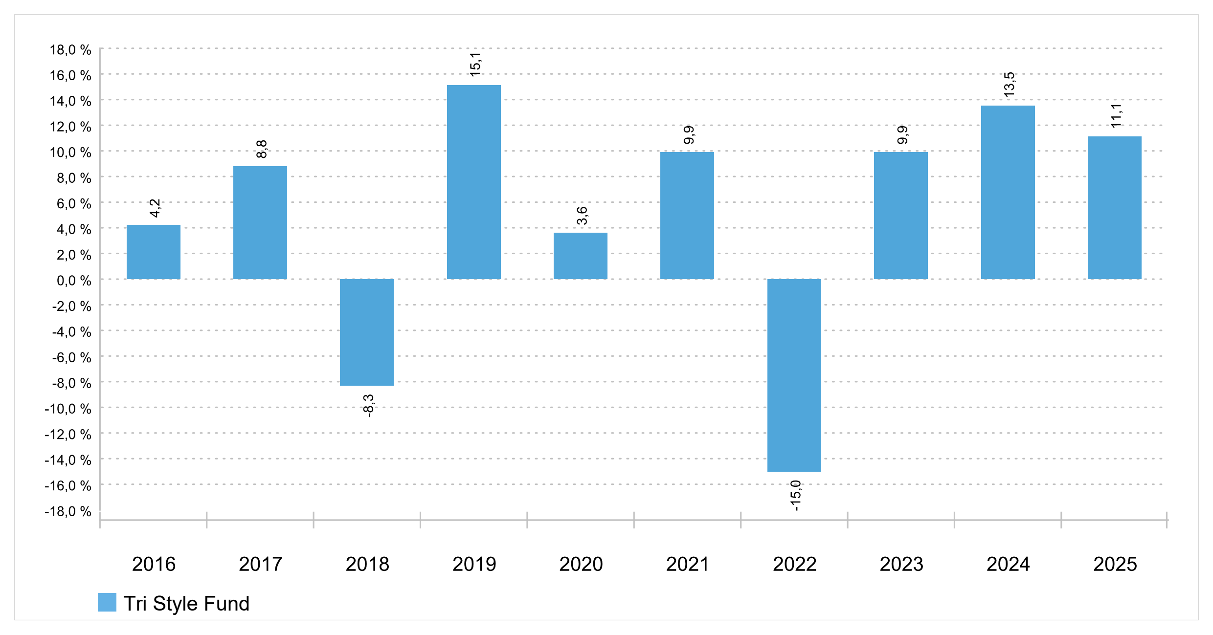Wertentwicklung pro Kalenderjahr in Prozent